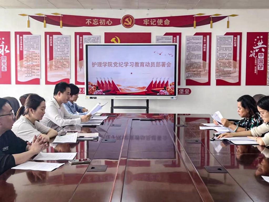 为深入学习贯彻习近平总书记关于党纪学习教育的重要讲话和重要指示批示精神,传达学习中央党的建设工作领导小组会议及省委、省卫生健康委党组有关会议精神,学习校党委副书记、校长李秋根在全校党纪学习教育动员部署大会上的讲话精神等,4月24日,BV伟德官方网站召开党纪学习教育动员部署会议,研究部署学院党纪学习教育工作。护理学院党委副书记陈敏主持会议。