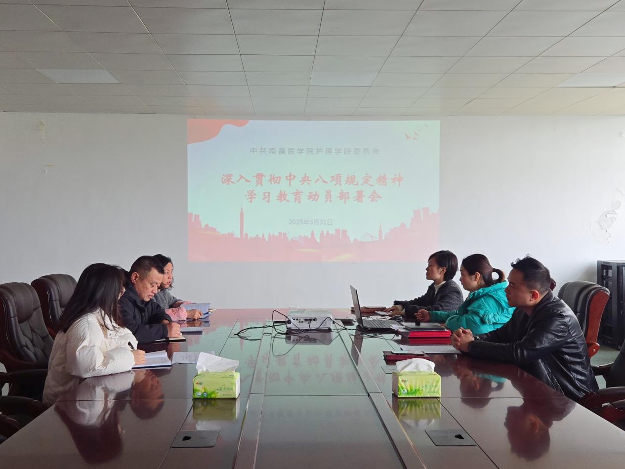 会议传达了省委、省卫生康健委、省教育工委以及校党委关于深入贯彻中央八项规定精神学习教育的会议精神,审议通过了《BV伟德官方网站深入贯彻中央八项规定精神学习教育工作计划》,并就学院下一步工作进行了安排部署。