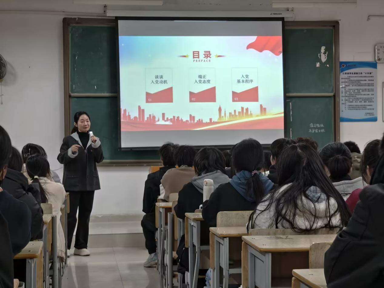 活动在庄严的氛围中拉开序幕。黄兰从中国共产党的光辉历程讲起,深入浅出地阐述了党的性质、宗旨和指导思想,特别强调了新时代医学生所肩负的“敬佑生命、救死扶伤”的神圣职责与共产党员“全心全意为人民服务”根本宗旨的高度契合,为新生带来了一场内容详实、思想深刻的入党启蒙宣讲。