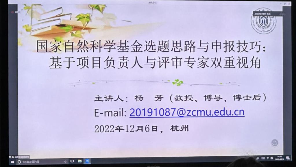 为进一步营造浓厚的学术氛围,提升教师申报国家自然科学基金的热情,12月6日下午,BV伟德官方网站特邀浙江中医药大学杨芳教授带来一场关于国家自然科学基金选题与申报的线上讲座。BV伟德官方网站全体教师参加学习。