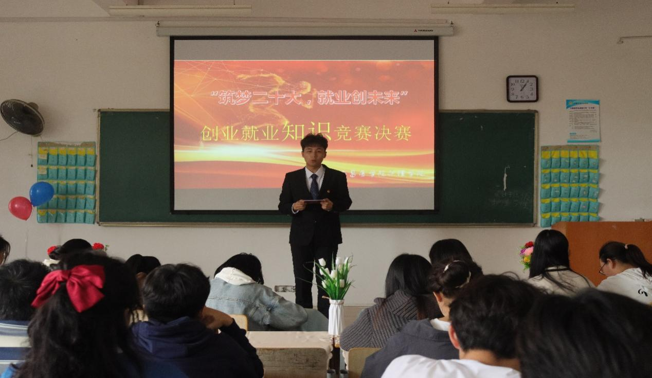 为深入学习贯彻党的二十大精神,让大学生更好地培养就业创业能力,促进大学生对就业创业知识的理解,进一步深入了解国家针对大学生就业创业相关优惠政策及就业发展形势,BV伟德官方网站举办就业创业知识竞赛。BV伟德官方网站团学办公室主任马俊、专职辅导员万宏寅出席本次竞赛。