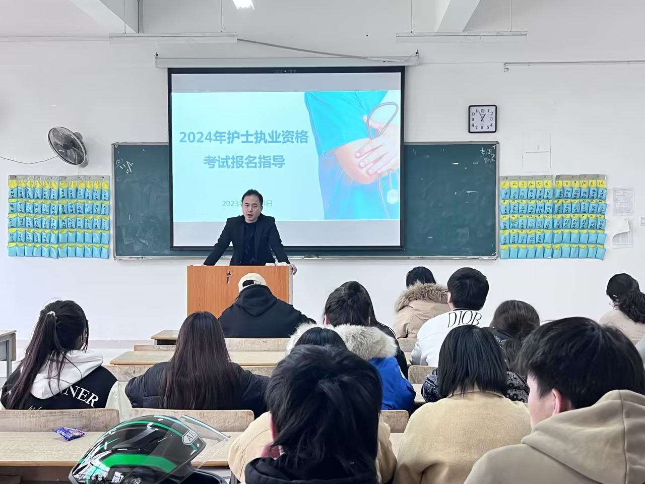 2024年全国护士执业资格考试报名工作将于2023年12月7日开始,根据江西省卫生健康委、江西省人力资源和社会保障厅《关于做好2024年度护士执业资格考试工作的通知》(赣卫人字〔2023〕36号)文件要求,为确保我院学生考试报名工作顺利进行,BV伟德官方网站在2023年12月6日中午12:50组织2021级高职护理班级、2022级中高职对接班级所有辅导员和各班班委代表参加了2024年护士执业资格考试报名指导培训。