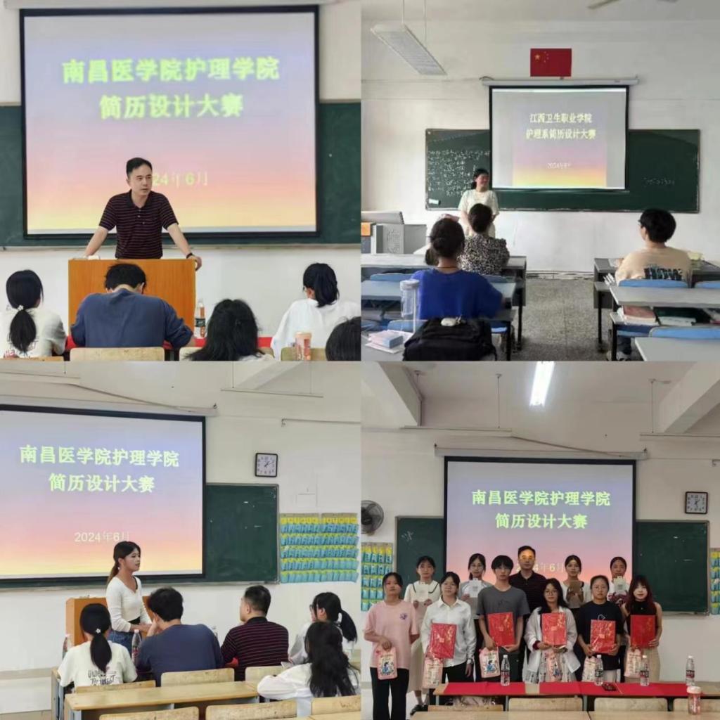 此次参赛学生的简历作品充满了创意和个性,从传统的文字描述到现代的多媒体演示,从简约的设计到富有艺术感的布局,每一份简历都展示了学生们对未来职业的规划和对自我的认知。其中,来自23高护6班曾乐辉和来自22护理4班胡彦琳以其独特的视角和精致的设计布局脱颖而出,分别斩获此次大赛专科组和本科组的一等奖。