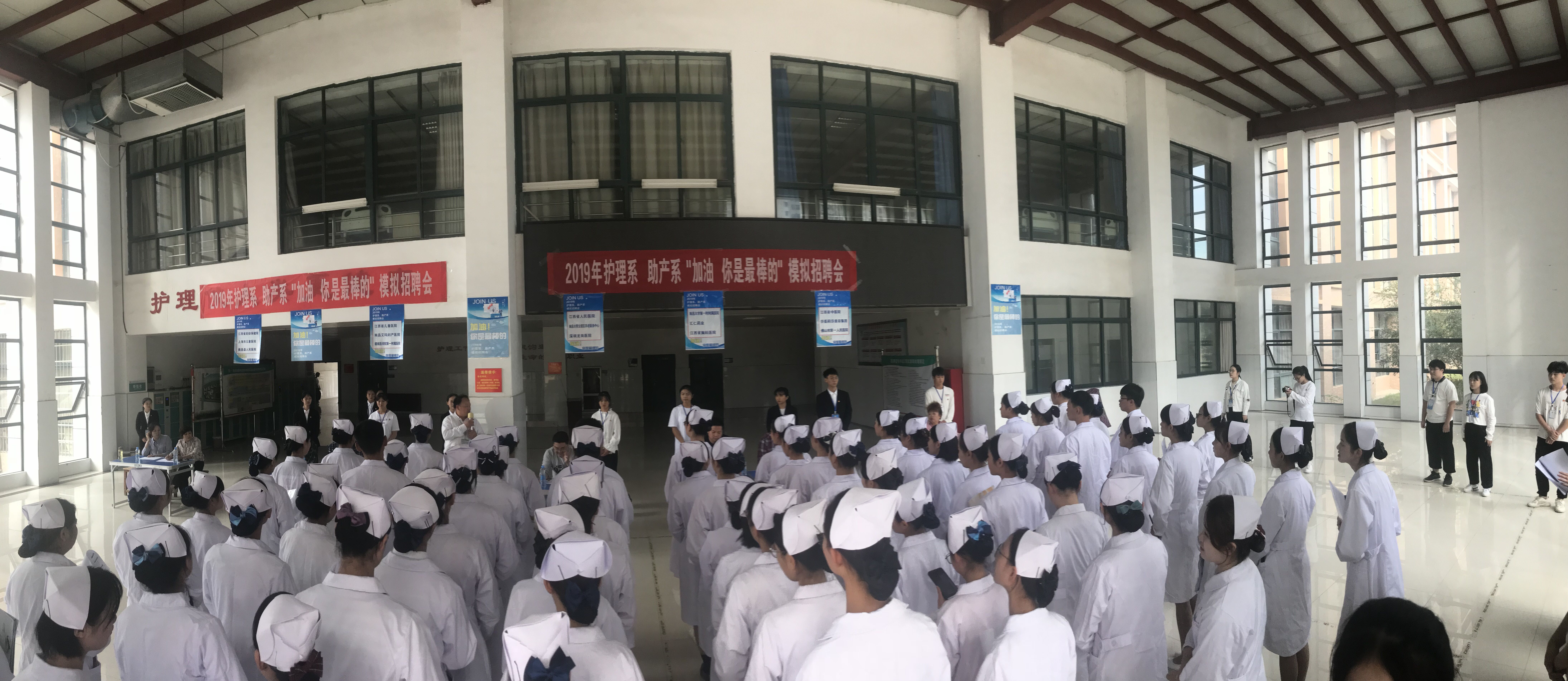 此次,以“加油,你是最棒的”为主题的校园模拟招聘会,旨在让护理、助产两个专业的同学能够提前体验求职的实况和气氛,锻炼自我推销的能力, 掌握面试技巧,进一提高两个系毕业生的求职竞争力。