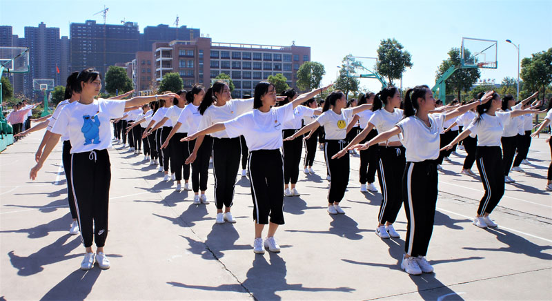 在轻松而活力的节奏音律,护理系的同学们每一次伸展、转体、踢腿、弯腰……动作娴熟到位,张弛有度,洋溢着青春的气息,飞扬着动人的神采。
