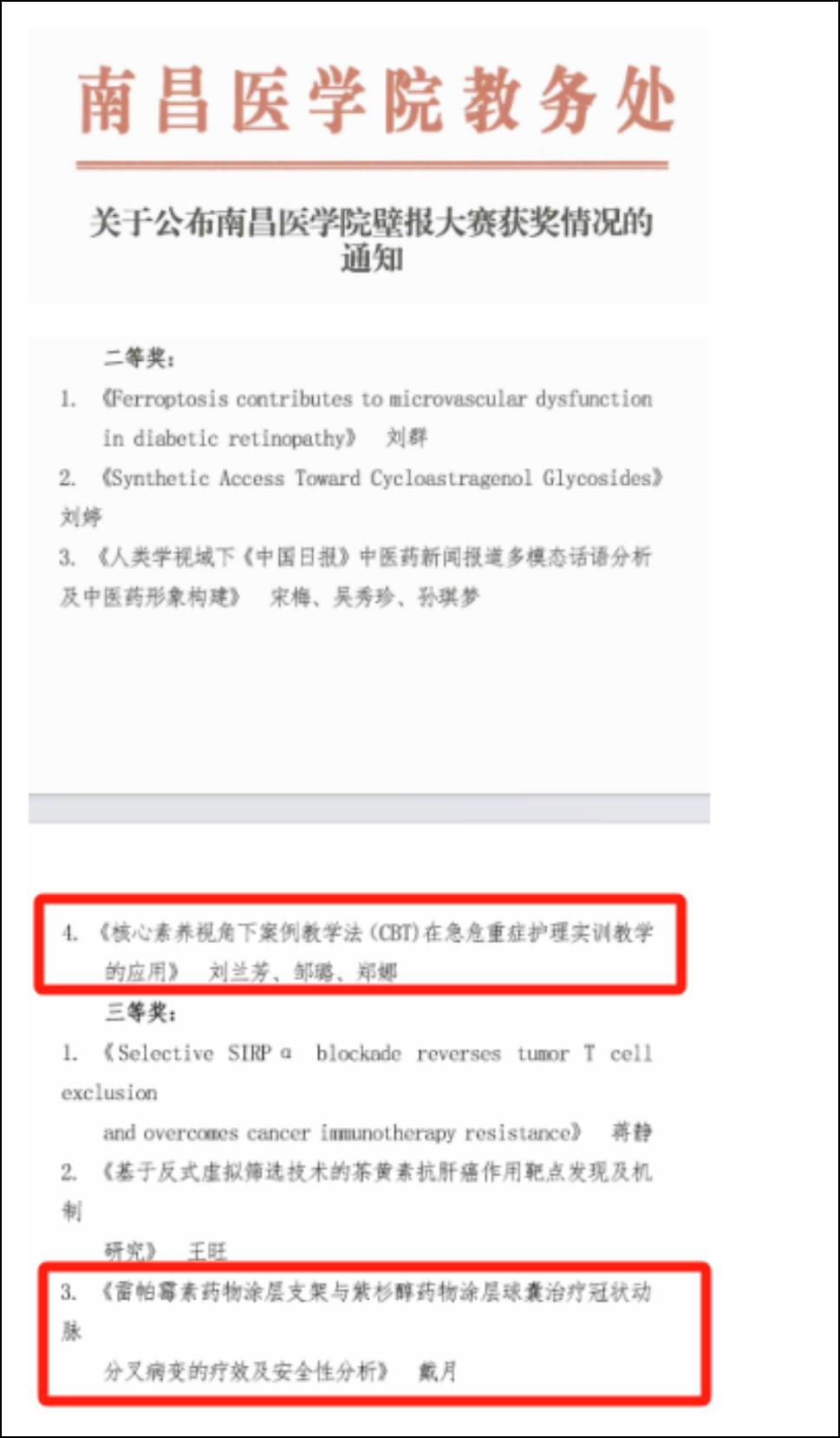 在“最美教研室”“最美实训室”评比大赛中,学院“人文护理教研室”“内科护理教研室”分别获得最美教研室二等奖和三等奖;老年护理实验室、现场急救实训室分别获得最美实训室一等奖和二等奖。