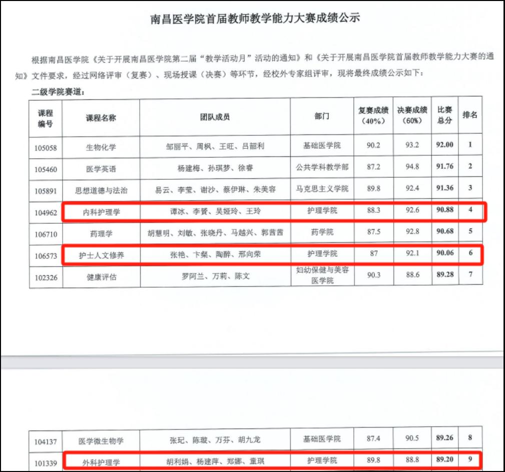 在首届教师教学能力大赛中,BV伟德官方网站谭冰等老师的《内科护理学》课程团队、张艳等老师的《护士人文修养》课程团队、胡利娟等老师的《外科护理学》课程团队分别取得第四名、第六名和第九名的佳绩。