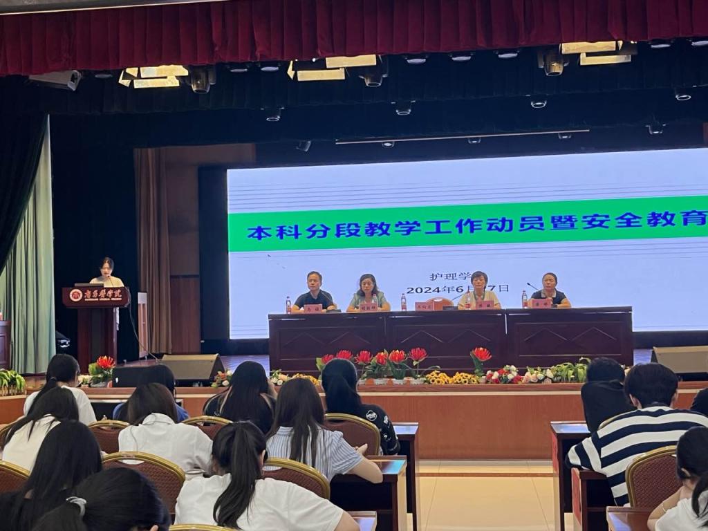 为深入贯彻落实国务院办公厅《关于加快医学教育创新发展的指导意见》精神,深入推进新医科建设,经学校党委审议决定2024年我校将在22级护理本科专业开展分段式教学改革。6月27日上午,BV伟德官方网站召开本科分段式教学动员暨安全教育大会。出席本次大会的有教务处实习科长王向东、BV伟德官方网站副院长胡颖辉、BV伟德官方网站党委副书记陈敏、BV伟德官方网站教学秘书唐婷、22级本科班辅导员及22级本科全体同学。会议由BV伟德官方网站团学办公室主任马俊主持。
