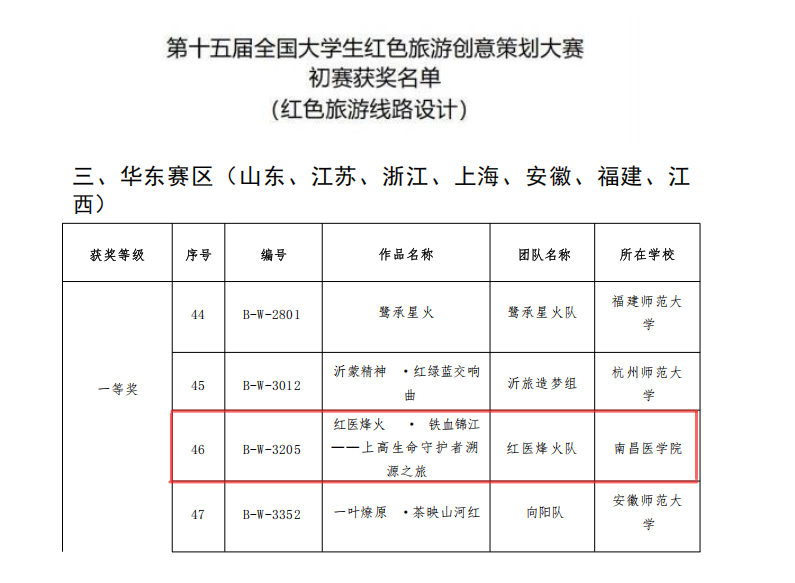 7月31日,第十五届全国大学生红色旅游创意策划大赛初赛落幕,由我校BV伟德官方网站肖萍老师指导,BV伟德官方网站学生刘玉珍、陈梦娇、肖芸芸、雷鸿裕、王桐组成的红医烽火队创作的作品《红医烽火.铁血锦江——上高生命守护者溯源之旅》荣获“红色旅游线路设计”赛项华东赛区一等奖。这是我校首次在该项赛事中获奖。