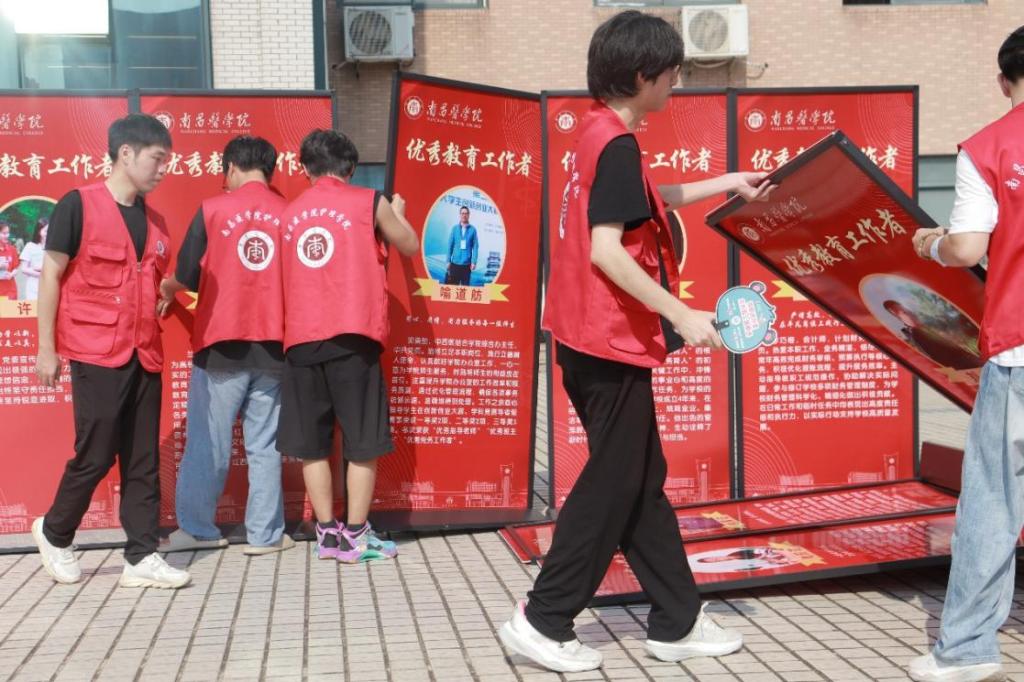 为了让新生快速融入 “护理大家庭”,志愿者们提前就开始精心策划并布置主题打卡点位 —— 在学院迎新帐篷前,以 “白衣执甲・逐梦南医” 为核心主题,两侧摆放着展示学院办学成果的展板,既有优秀校友的医护事迹,也有学生在 “三下乡”、技能大赛中的精彩瞬间。“我们想通过这些充满专业特色的布置,让新生一来就感受到BV伟德官方网站的温暖,也让他们对未来的学习生活充满期待。” 负责打卡点设计的志愿者李康同学说道。主题打卡点不仅成为校园里的 “网红地标”,更让迎新现场充满了青春活力与人文关怀。