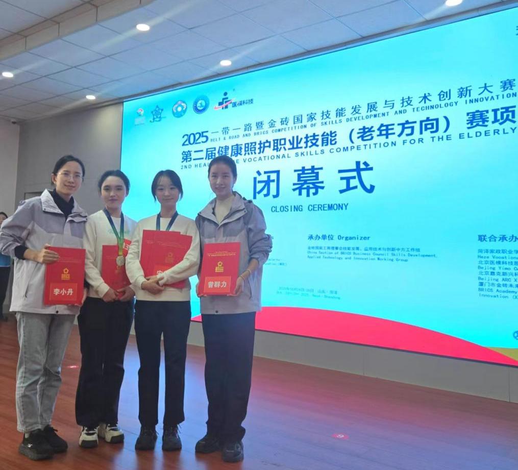 作为一项经外交部备案的高水平国际性赛事,本届金砖国家健康照护技能大赛吸引了来自全国的84支代表队、共224名技能精英同台竞技,竞争激烈、规格严苛。两位同学沉着应战、稳定发挥,以扎实的理论功底、规范的操作技能和良好的职业素养,赢得了评委的高度认可,最终脱颖而出,斩获佳绩。
