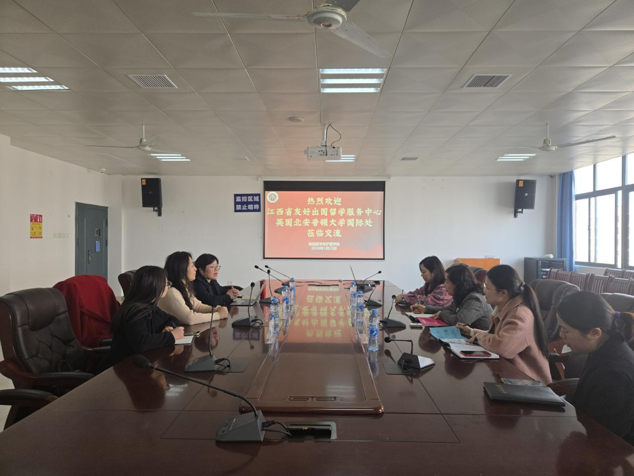 2026年1月15日,江西省友好出国留学服务中心主任丁群女士、项目经理朱梦女士陪同英国北安普顿大学国际处中国区域经理于丽娟女士来访,双方就护理学科国际合作项目开展交流。BV伟德官方网站副院长胡颖辉、陈婧、国际合作交流中心汪露老师及相关教师出席座谈。