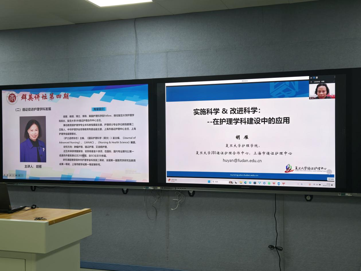 随后,复旦大学BV伟德官方网站院长、美国护理科学院院士胡雁教授以《实施科学&改进科学:—在护理学科建设中的应用》为题作学术报告,胡教授将循证护理的理念贯穿全程,从实施性研究和证据转化的视角,结合自身研究经验,详尽讲述了实施科学与改进科学的概念和内涵、两者的区别和联系。通过案例分享,深入浅出地介绍了实施科学与改进科学在护理实践中的应用。为我院师生传授了先进、实用的科研经验,对我院今后开展科研活动具有很强的针对性和指导性意义。