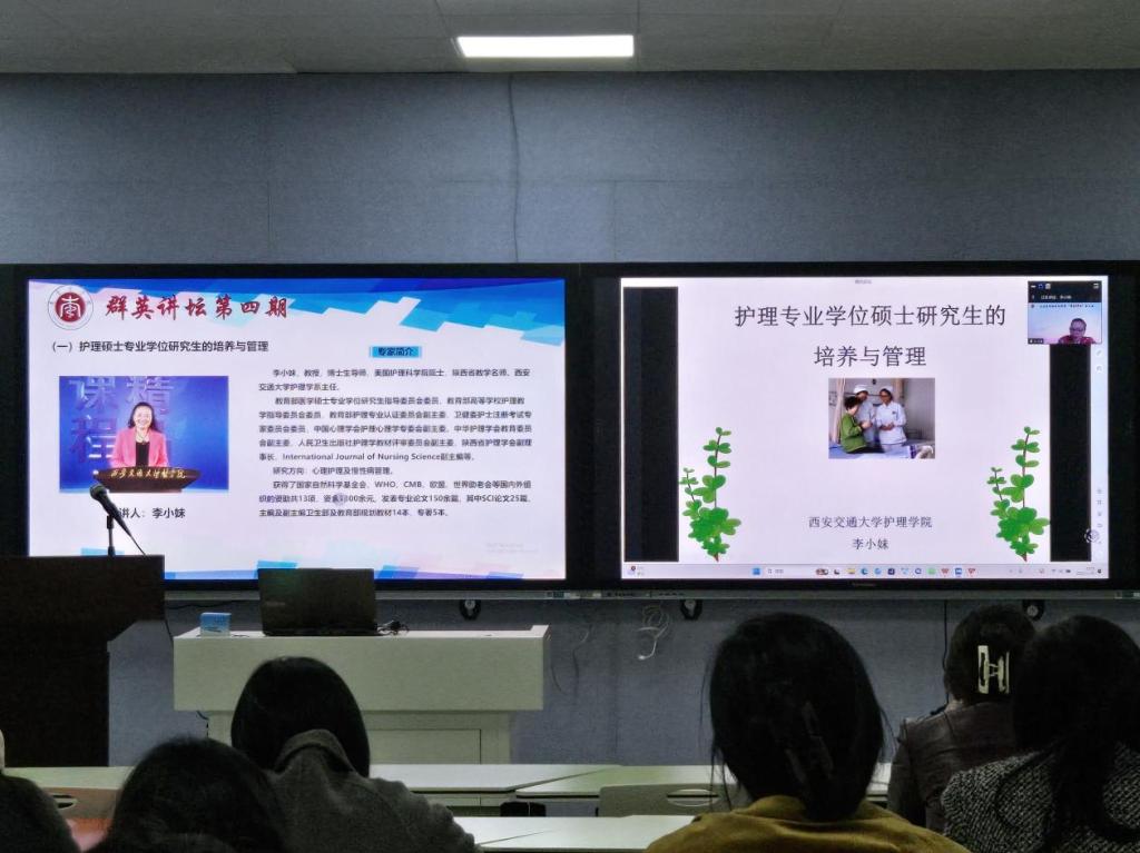 2024年11月20日下午,第四期“群英讲坛”学术讲座在BV伟德官方网站1号实训楼411智慧教室顺利举行。本次讲座特邀西安交通大学护理系主任李小妹教授、复旦大学BV伟德官方网站院长胡雁教授作专题报告。BV伟德官方网站和附属医院师生线上线下共计200余人参加学习。讲座由BV伟德官方网站副院长胡颖辉主持。