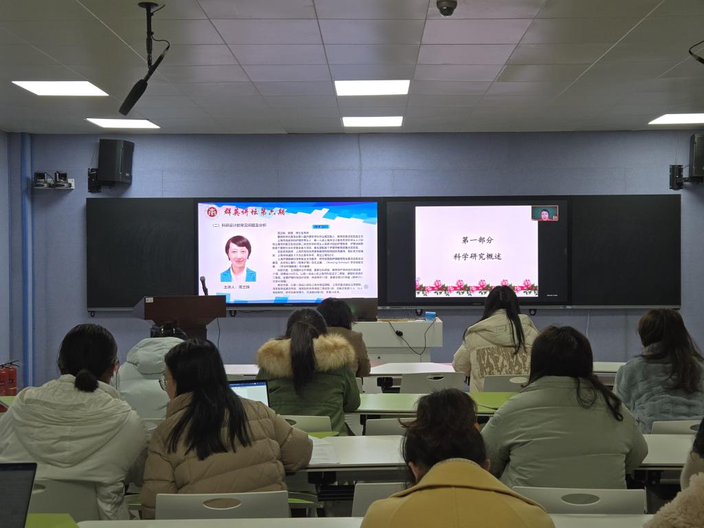 随后,国务院学位委员会护理学学科评议组召集人、海军军医大学周兰姝教授以“科研设计常见问题分析”为题,阐述了科研的一般程序和科研选题的基本原则,逻辑清晰地分析了立题和选题的常见问题、研究设计的常见问题等,切实解答了我院在科研设计与写作方面存在的困惑。