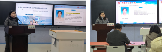 刘兰芳副教授以“音乐疗法与心理干预:护理教育中的应用与实践”为题,带领大家走进音乐疗法的奇妙世界。她从音乐疗法的定义与理论基础、护理教育的心理干预需求、音乐疗法的核心作用机制、护理教育中的应用和实践四个方面进行了详细讲解。讲座结束后,刘老师还与教师们进行了音乐感知和音乐想象的互动,轻松愉悦的氛围让老师们的身心得到了极大的放松。